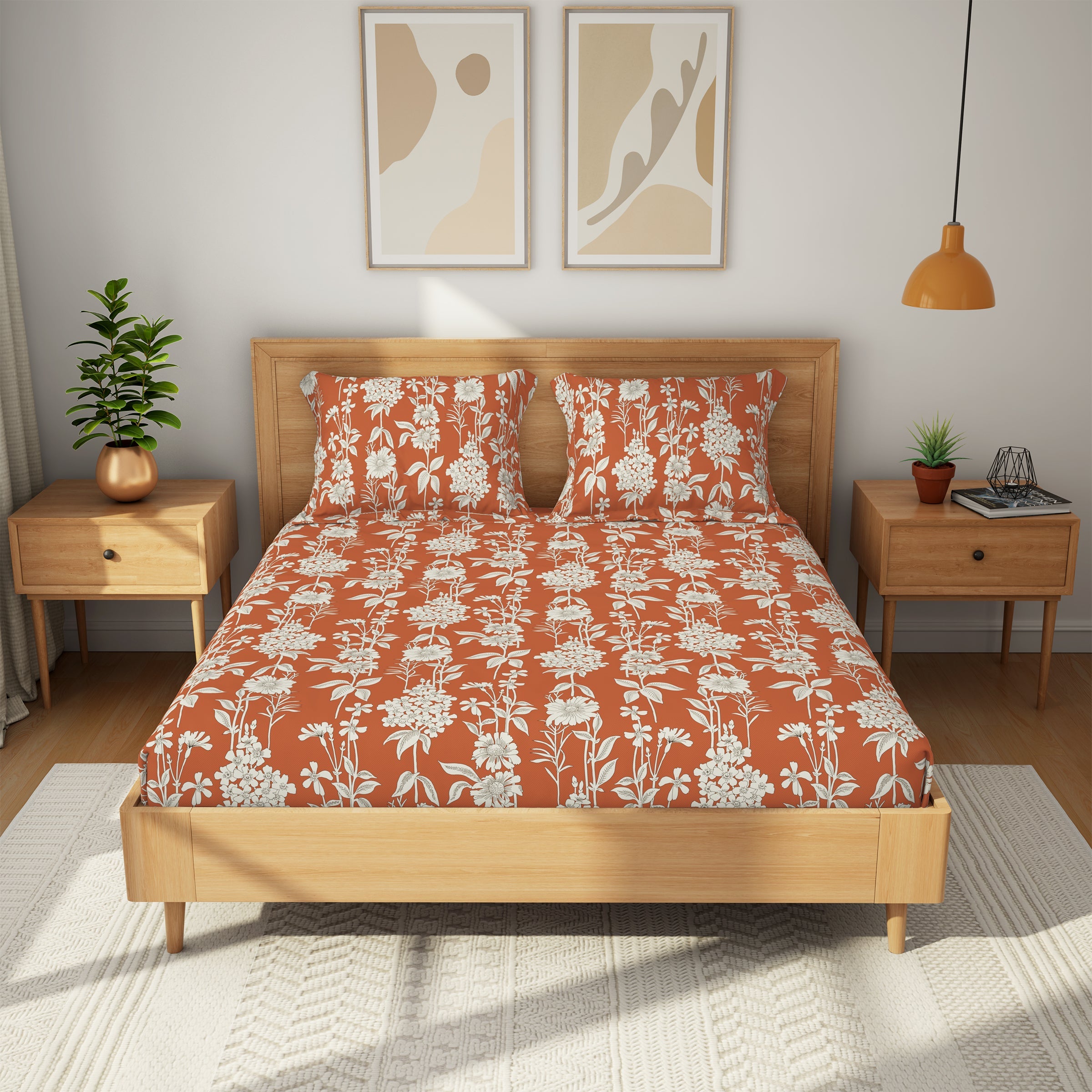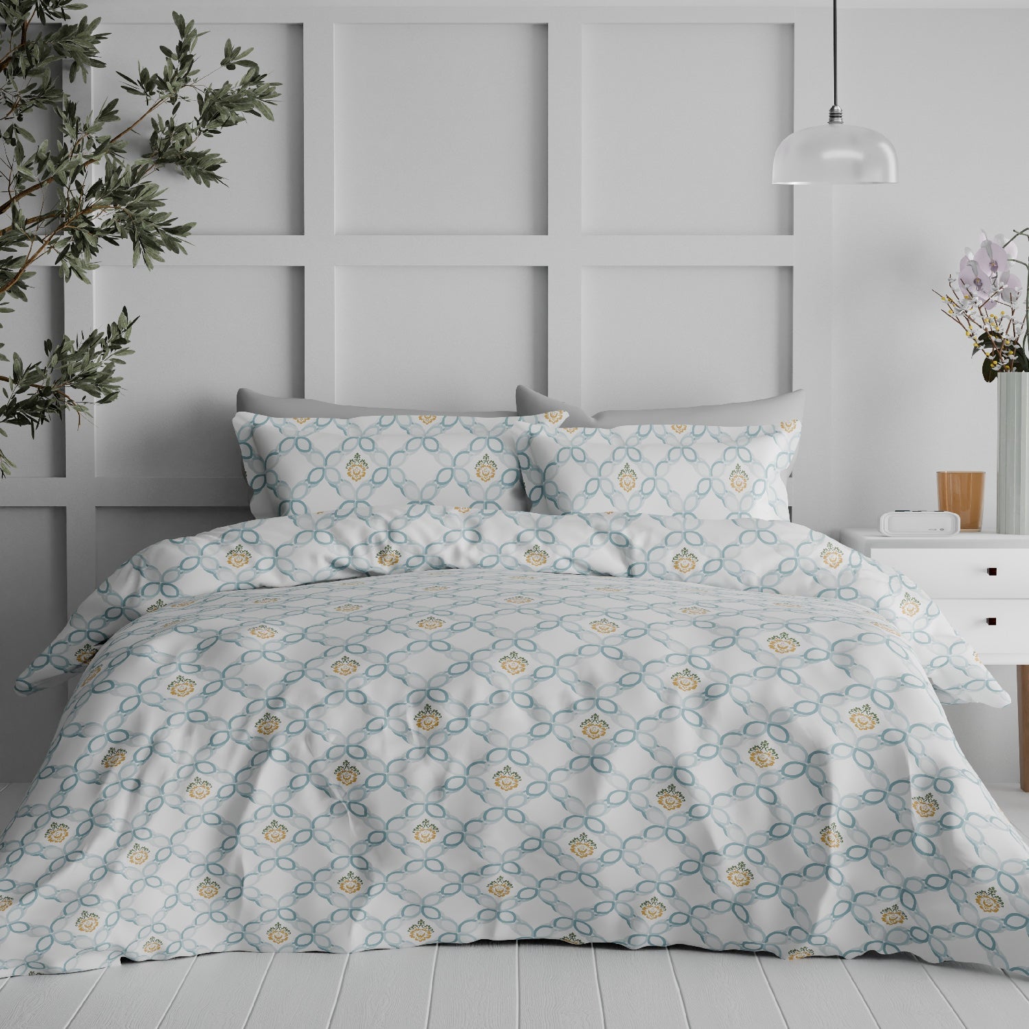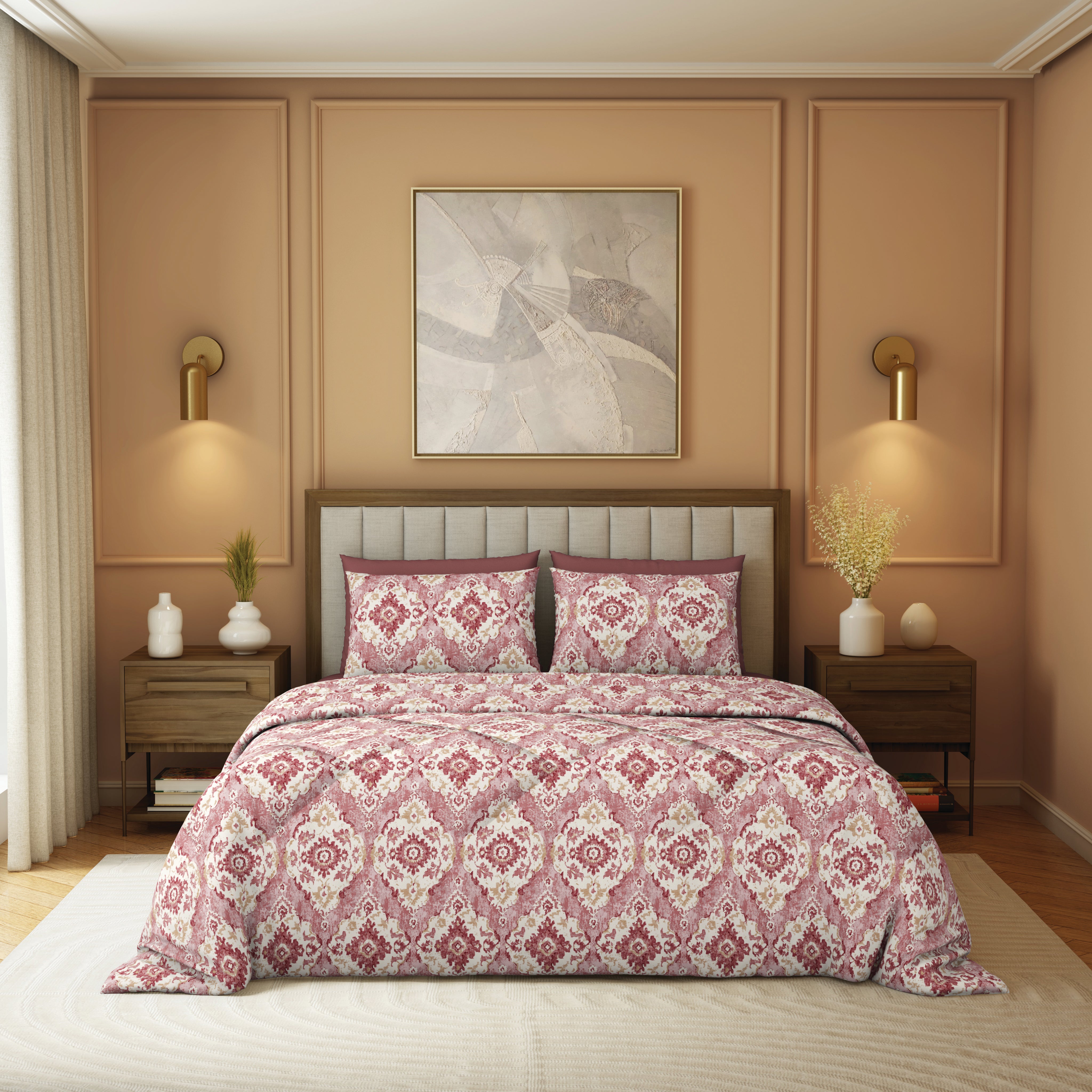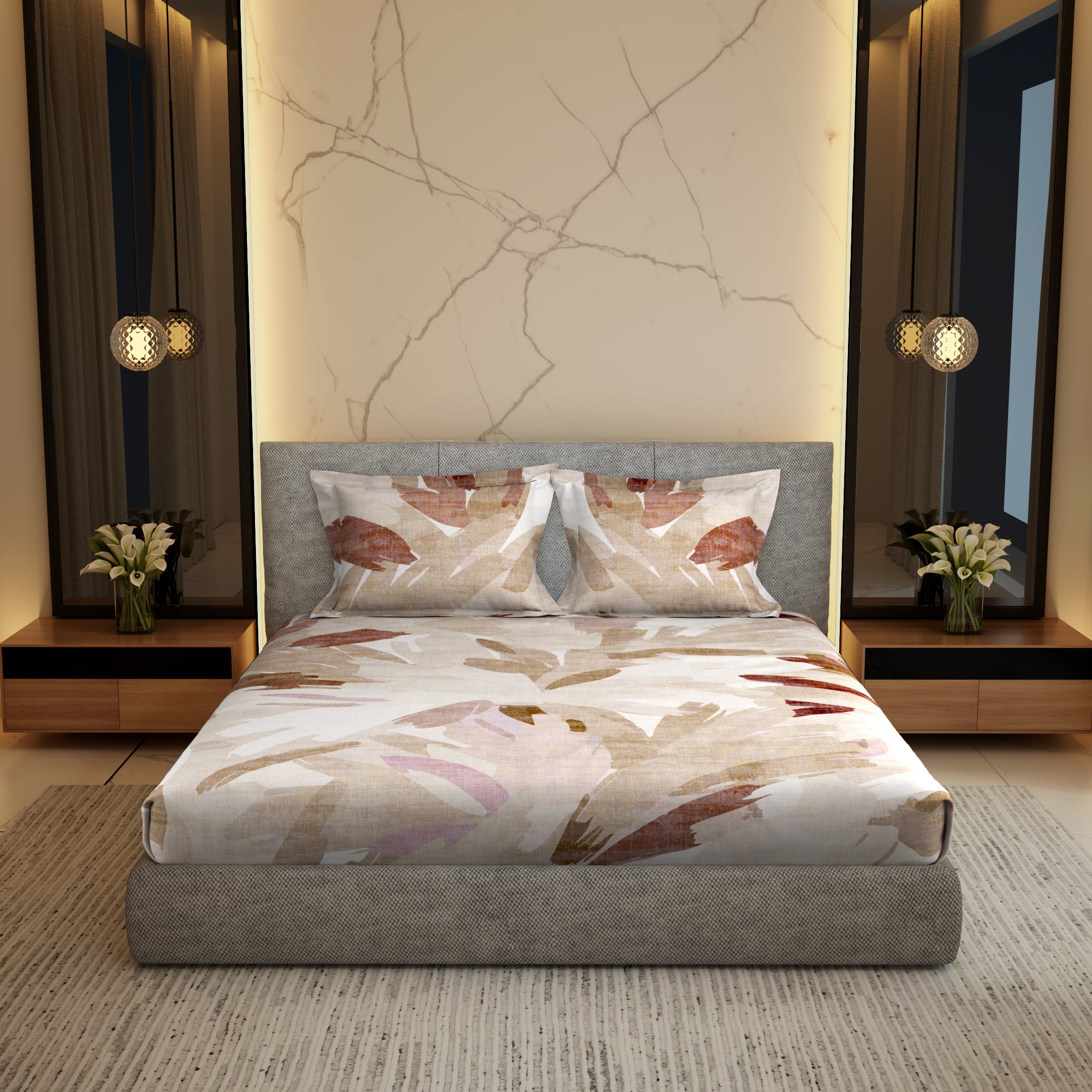 The Comfort Collection | Printed Double Bedsheet Set | 144 TC Percale Print-Soft Charcoal