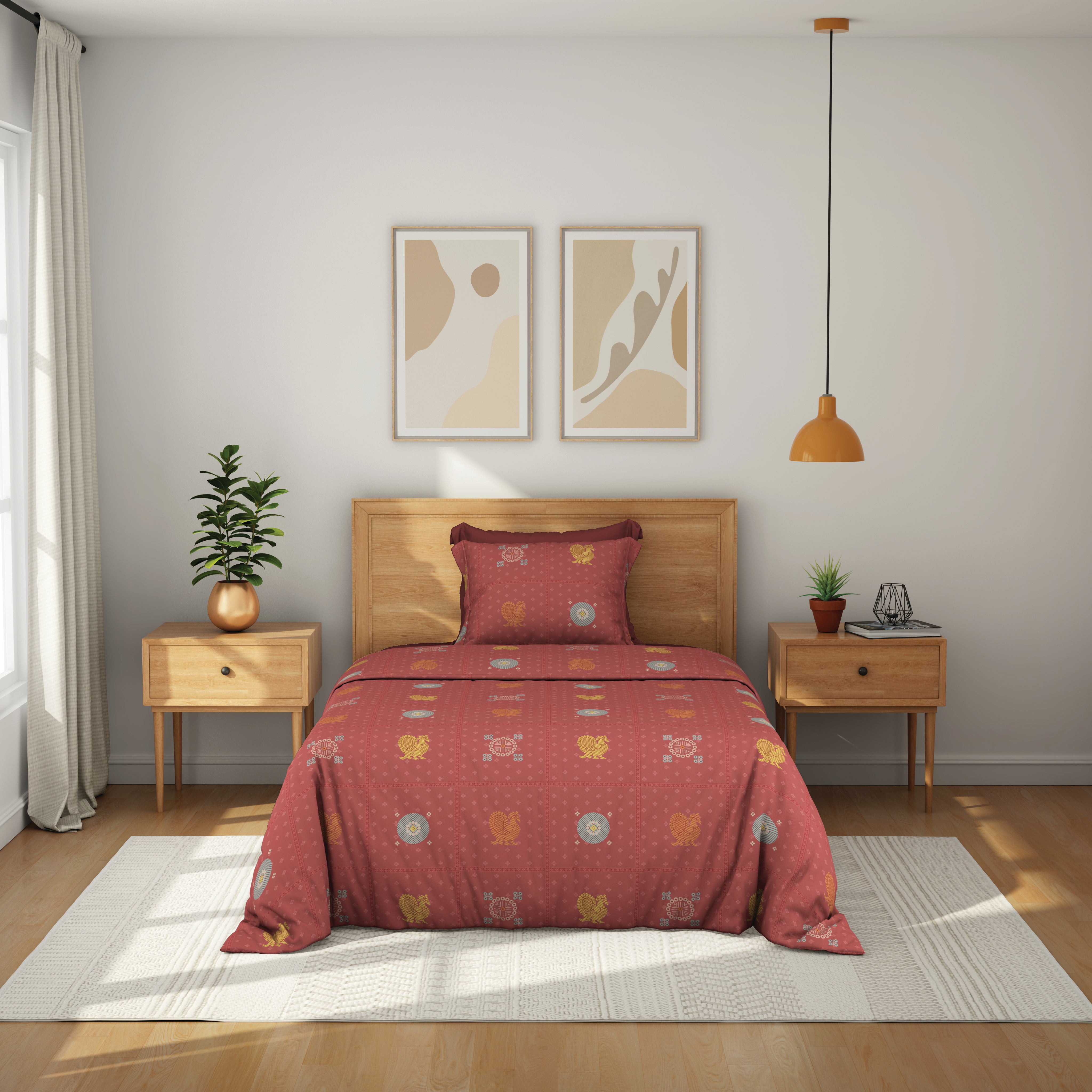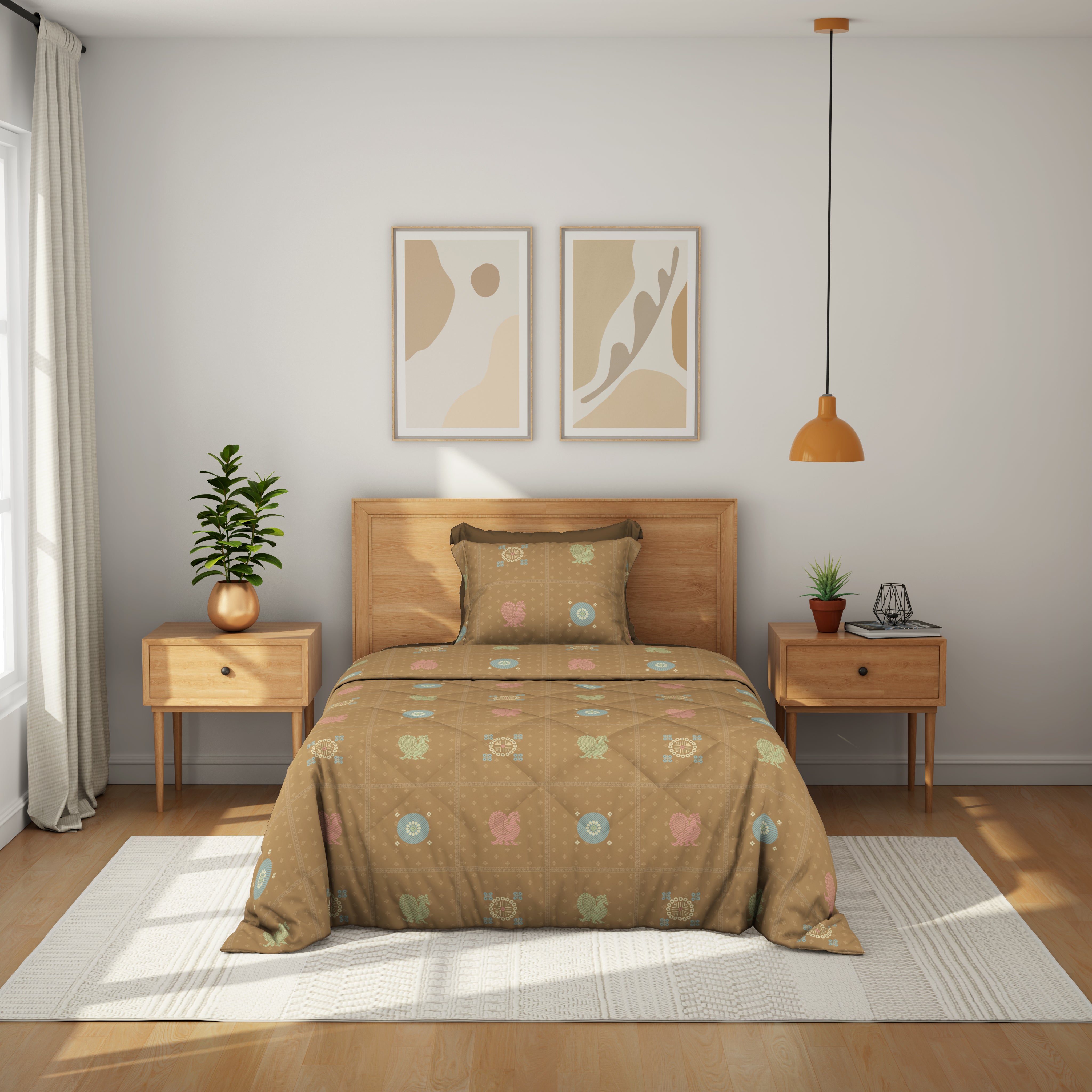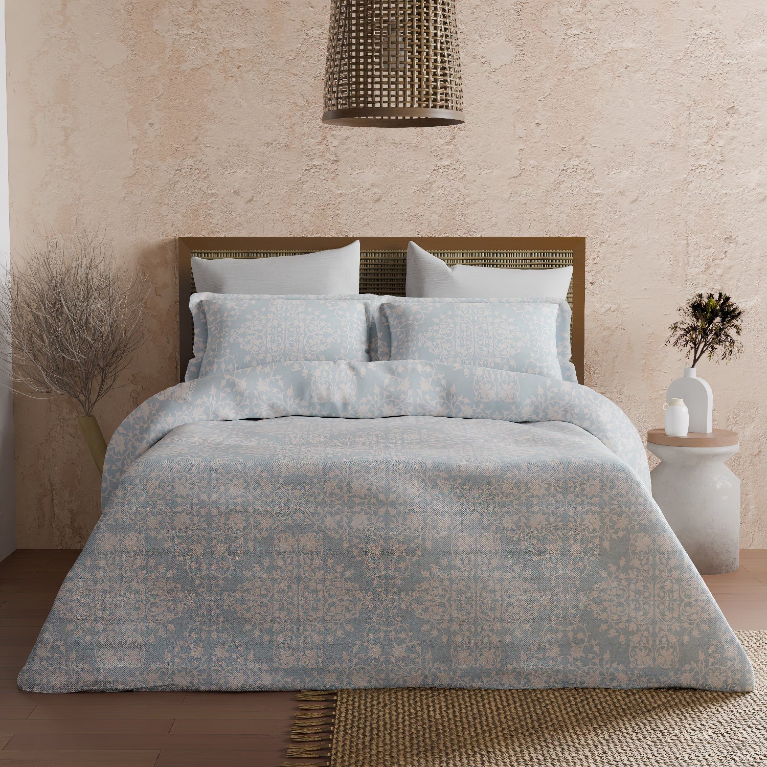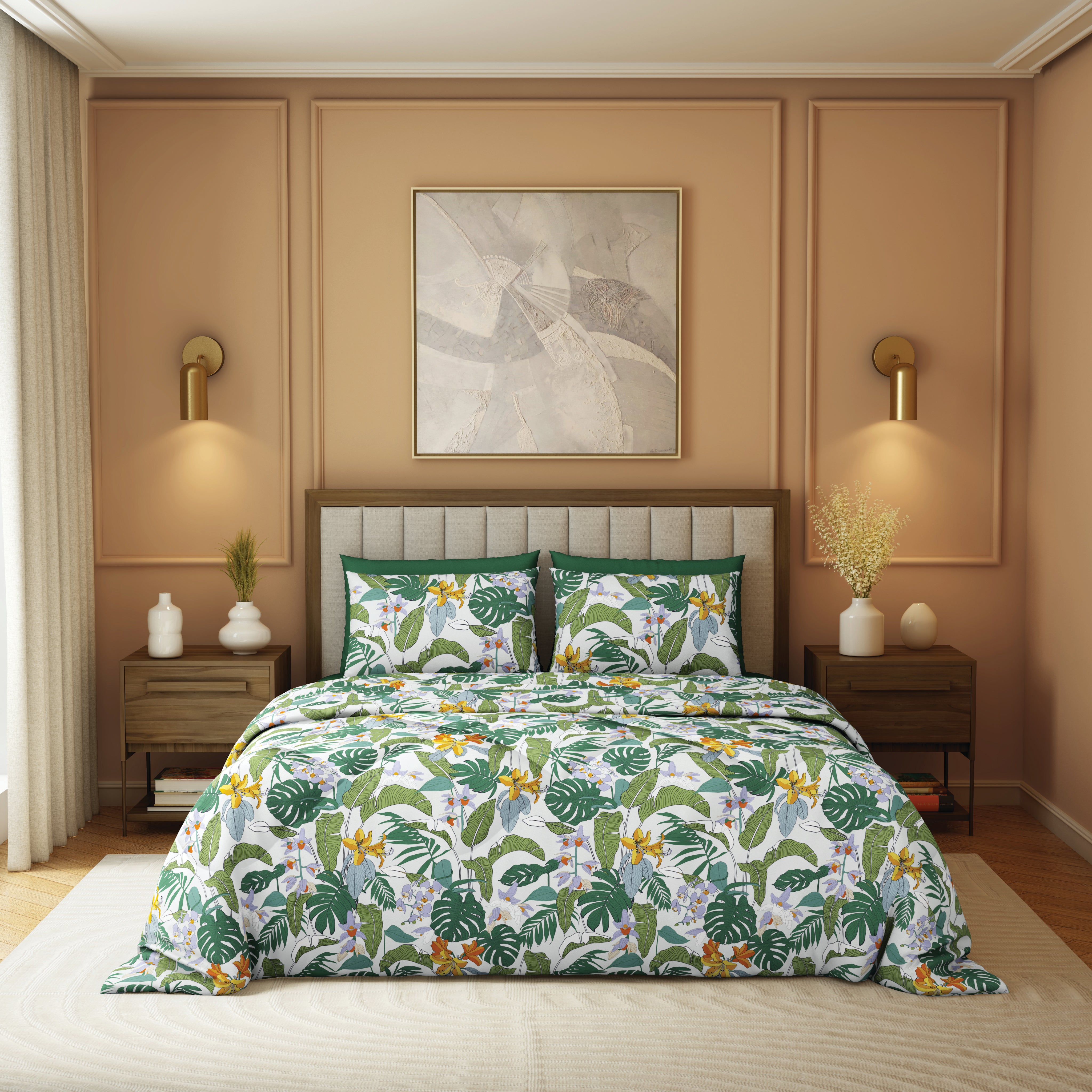 The Comfort Collection | Printed Double Bedsheet Set | 144 TC Percale Print-Soft Charcoal